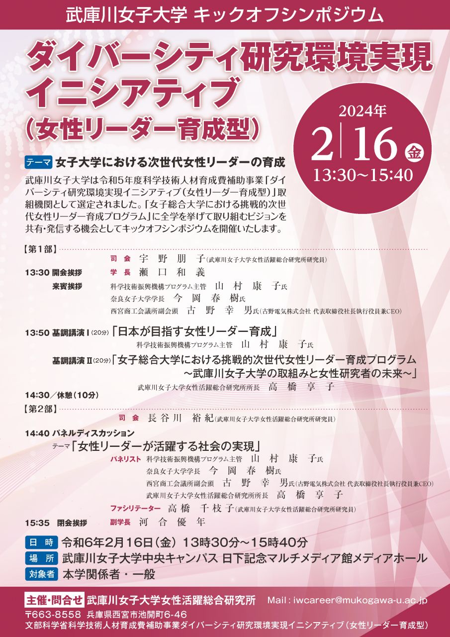 ダイバーシティ研究環境実現イニシアティブ(女性リーダー育成型)