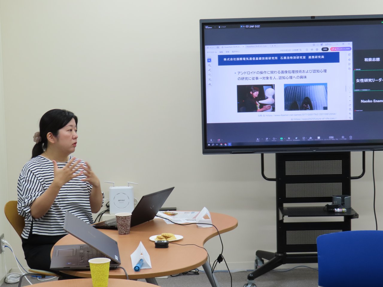 今回のテーマは、「感情リテラシー、教育工学、子ども」でした。社会情報学科の榎並 直子先生と和泉 志穂先生が登壇され、ご自身の専門研究と、お二人が共同で取り組まれている研究についてご紹介されました。