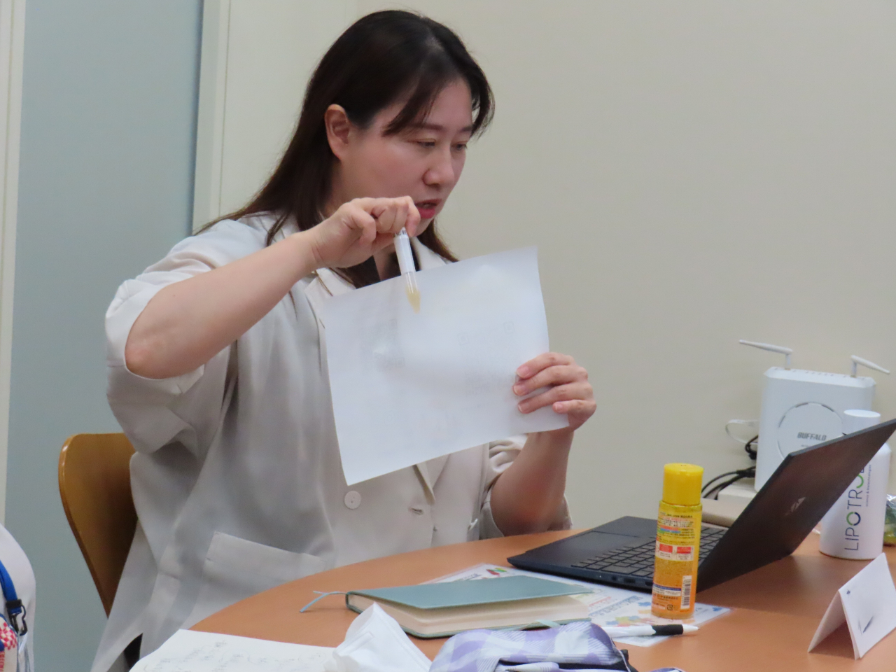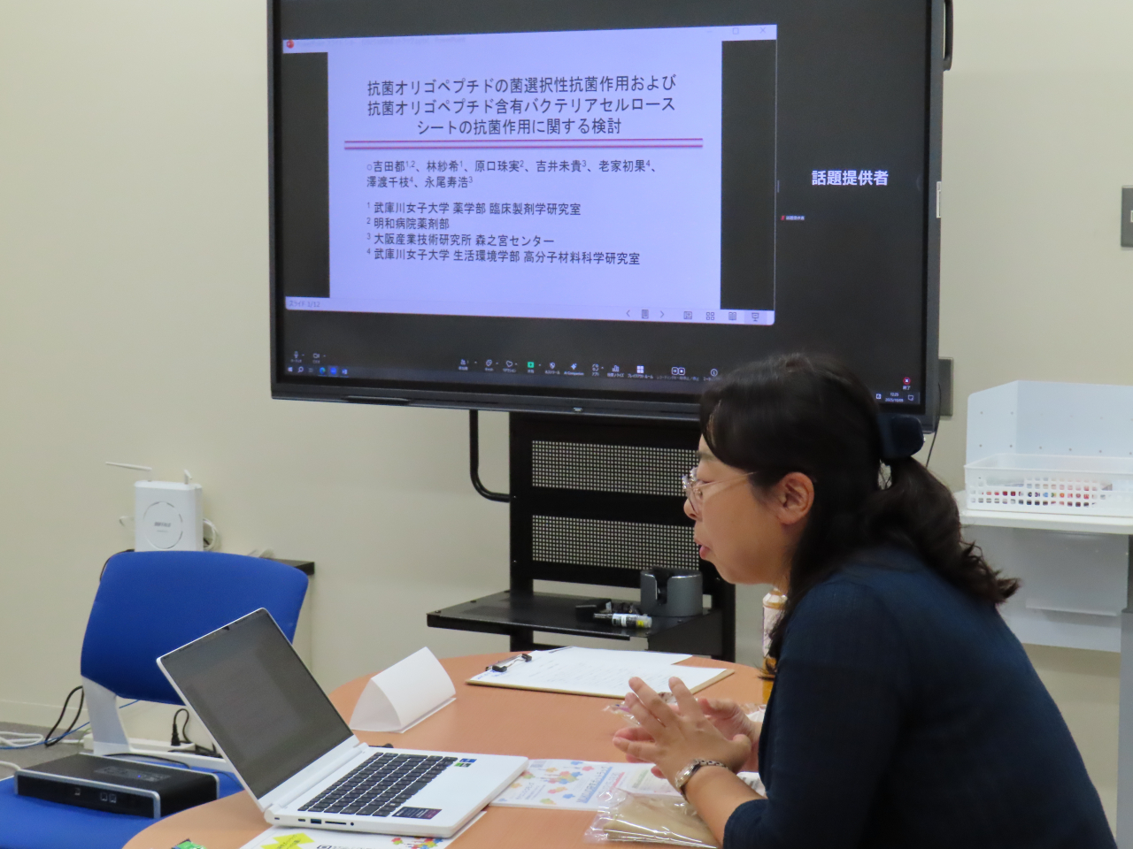 生活環境学部生活環境学科の澤渡千枝教授、薬学部学科の吉田都教授と薬学部健康生命薬科学科の仁木洋子准教授より、バクテリアナノセルロース、抗菌やアンチエイジングをテーマに話題提供を頂きました。